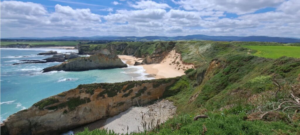 Descripción: La Playa de Santa Gadea es una cala natural y tranquila situada en un entorno costero agreste y poco urbanizado, ideal para quienes buscan un rincón aislado y silencioso. Su paisaje combina arena y roca, rodeado de acantilados que le dan un aspecto salvaje y con encanto. No dispone de servicios ni vigilancia, y su acceso no es completamente cómodo ni adaptado, lo que contribuye a que mantenga un ambiente poco concurrido durante casi todo el año. La superficie útil de arena se reduce con la marea alta y, como ocurre en varias playas abiertas al mar Cantábrico, el baño puede ser arriesgado en días de fuerte oleaje o mar agitada.