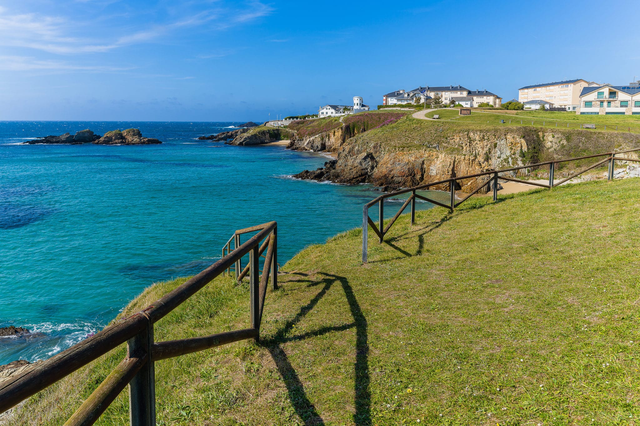 Descripción: La Playa de Represas es una pequeña cala situada al oeste del casco urbano de Tapia de Casariego. Se caracteriza por su entorno natural y agreste, rodeado de acantilados y vegetación, lo que la convierte en una playa tranquila y poco frecuentada, ideal para quienes buscan relajarse lejos de zonas masificadas. Su acceso, aunque no complicado, no cuenta con servicios en la propia playa, lo que refuerza su carácter salvaje. En marea alta puede perder gran parte de superficie útil, siendo recomendable visitarla preferiblemente con la marea baja. Su naturaleza abierta al mar Cantábrico hace que el baño pueda ser peligroso en días de fuerte oleaje.