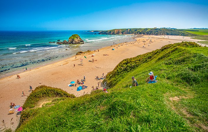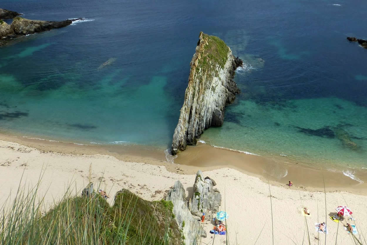 Descripción: La Playa de Serantes es una de las playas más amplias y conocidas del concejo, situada en un entorno natural de gran belleza y rodeada por un amplio arenal que se abre hacia el Cantábrico. Es una playa ideal para el disfrute familiar, paseos por la arena y para tomar el sol con comodidad incluso en días de mayor afluencia. Dispone de acceso sencillo y zonas de aparcamiento cercanas, aunque no cuenta con muchos servicios en la propia playa. El oleaje puede ser notable dependiendo del estado del mar, por lo que en ocasiones requiere precaución al bañarse, especialmente si el mar está movido.