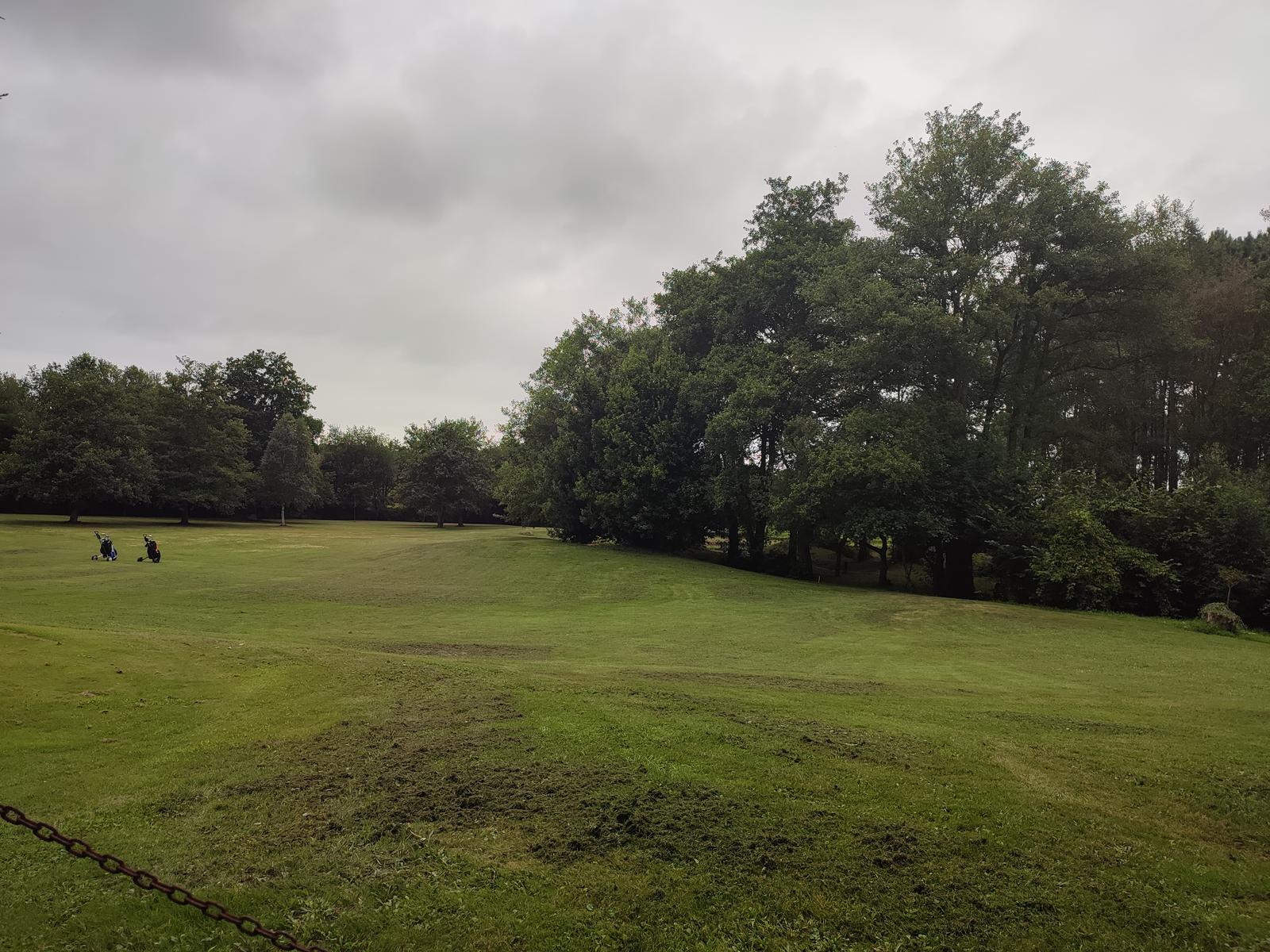 La ruta continúa cruzando un pequeño puente hacia una pista asfaltada, dejando atrás el pueblo de Casariego. Tras un nuevo cruce del río, una corta subida conduce hasta las inmediaciones del campo de golf Cierro Grande, que se bordea manteniéndolo a la derecha.