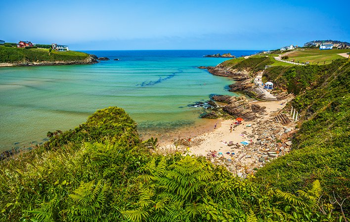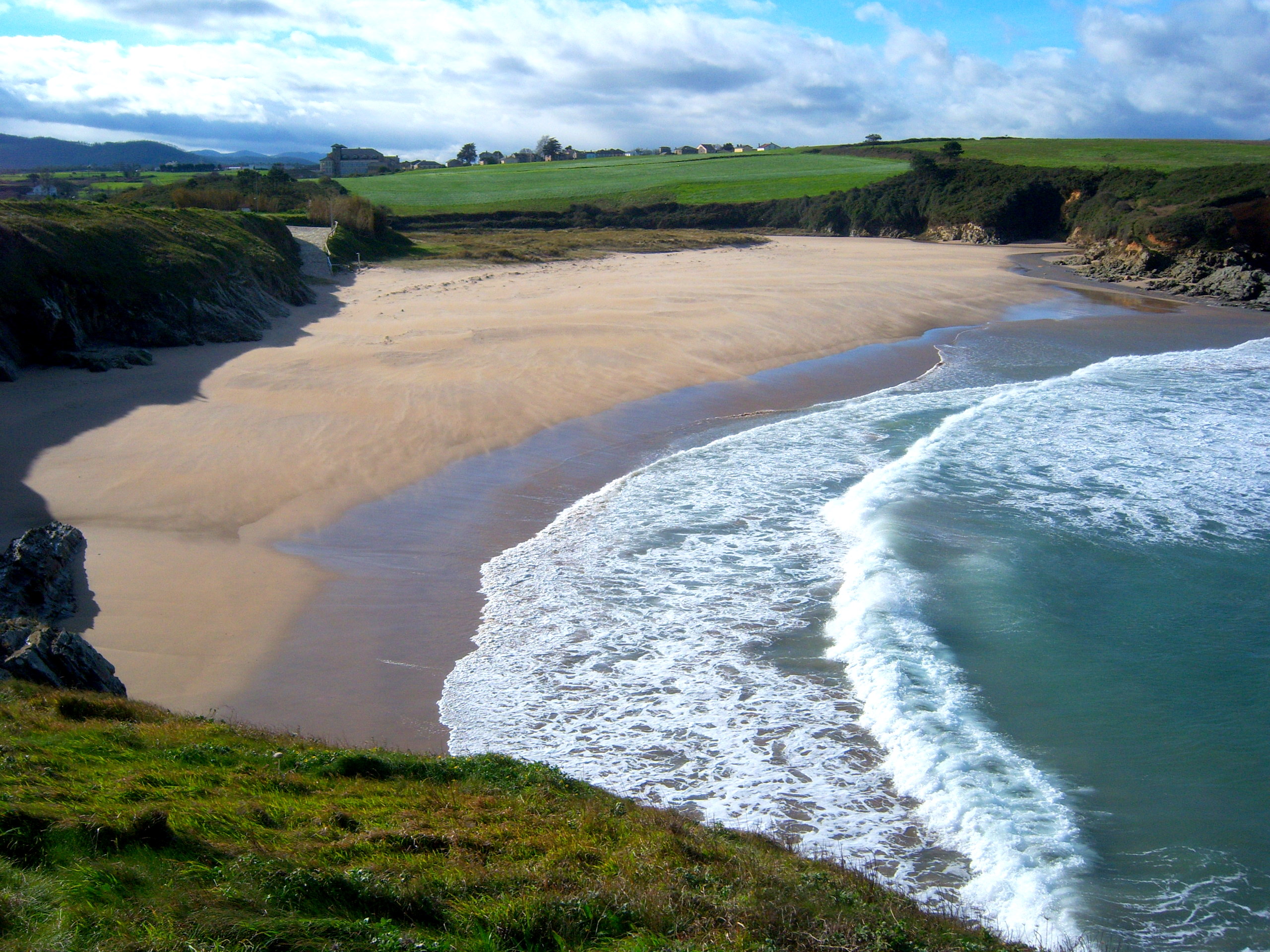 Descripción: La Playa de Serantes es una de las playas más amplias y conocidas del concejo, situada en un entorno natural de gran belleza y rodeada por un amplio arenal que se abre hacia el Cantábrico. Es una playa ideal para el disfrute familiar, paseos por la arena y para tomar el sol con comodidad incluso en días de mayor afluencia. Dispone de acceso sencillo y zonas de aparcamiento cercanas, aunque no cuenta con muchos servicios en la propia playa. El oleaje puede ser notable dependiendo del estado del mar, por lo que en ocasiones requiere precaución al bañarse, especialmente si el mar está movido.