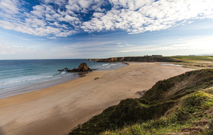 Descripción: La Playa de Peñarronda es uno de los arenales más extensos y emblemáticos del occidente asturiano, situada entre los concejos de Tapia de Casariego y Castropol. Su característica más reconocible es la gran roca redondeada ubicada en el centro de la playa, que le da nombre y se ha convertido en su imagen más representativa. Se trata de una playa abierta y espaciosa, ideal para disfrutar del sol, caminar por su largo arenal o practicar deportes como surf o bodyboard, muy populares en la zona gracias al oleaje favorable. Cuenta con buenos accesos, aparcamiento próximo y ciertos servicios básicos en temporada. Dispone de vigilancia en verano, lo que la convierte en una playa adecuada también para familias, aunque en días de fuerte mar es recomendable extremar la precaución.