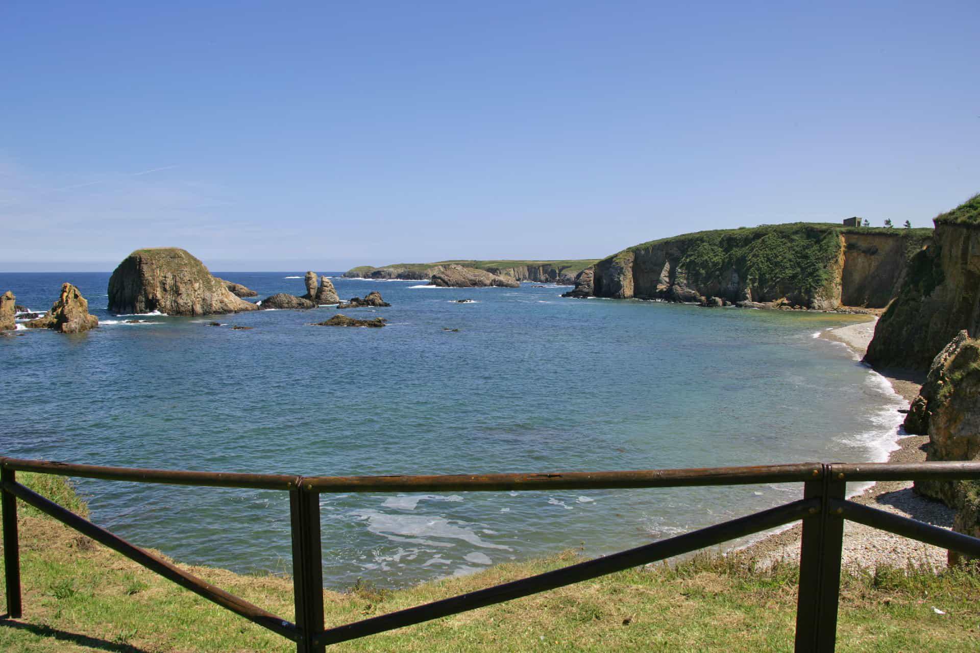 Descripción: La Playa de Represas es una pequeña cala situada al oeste del casco urbano de Tapia de Casariego. Se caracteriza por su entorno natural y agreste, rodeado de acantilados y vegetación, lo que la convierte en una playa tranquila y poco frecuentada, ideal para quienes buscan relajarse lejos de zonas masificadas. Su acceso, aunque no complicado, no cuenta con servicios en la propia playa, lo que refuerza su carácter salvaje. En marea alta puede perder gran parte de superficie útil, siendo recomendable visitarla preferiblemente con la marea baja. Su naturaleza abierta al mar Cantábrico hace que el baño pueda ser peligroso en días de fuerte oleaje.