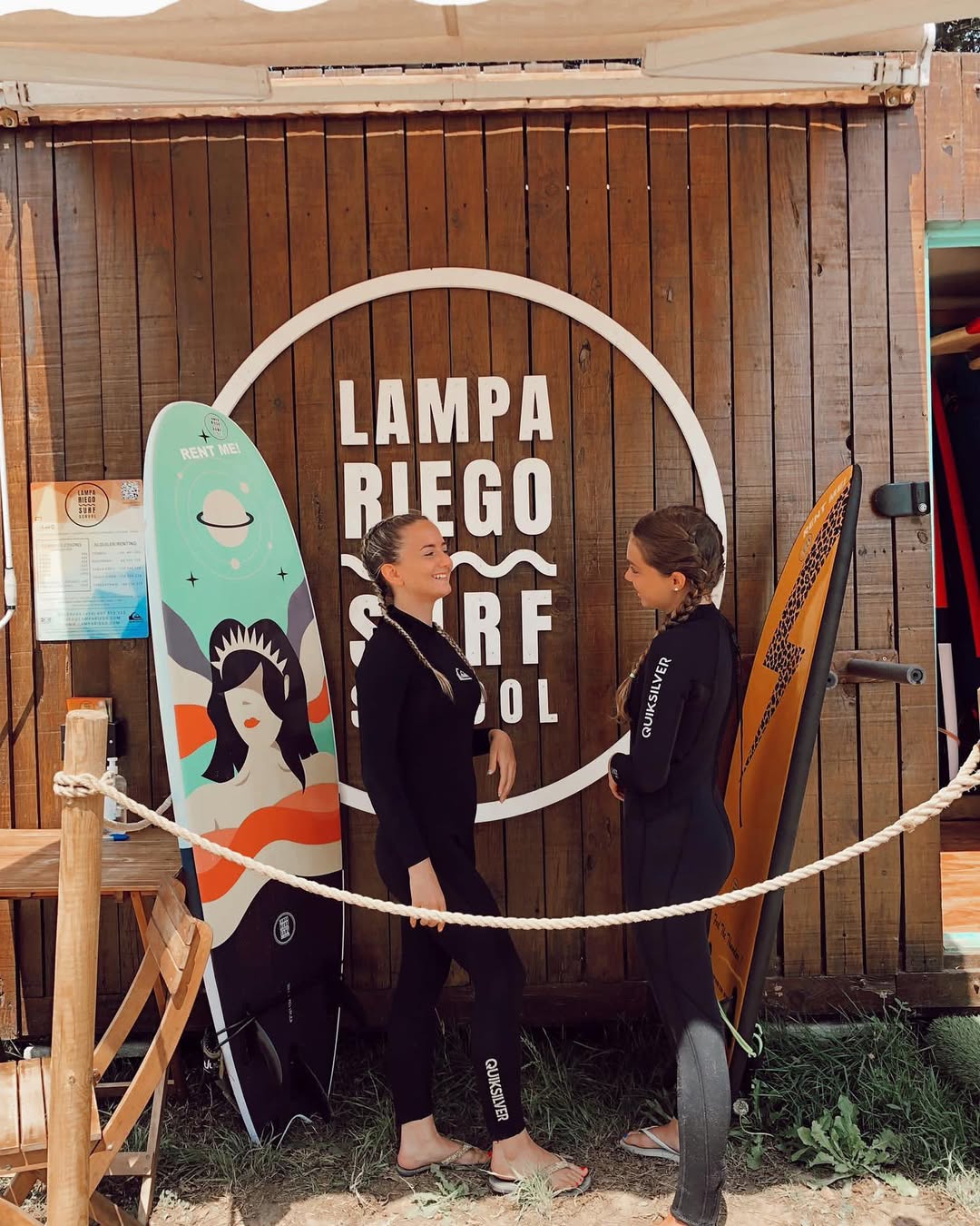 Todo el material (tabla y el traje de Surf adecuado para la época del año) van incluidos en el precio del curso. Cobertura total: seguro de responsabilidad civil y accidente.