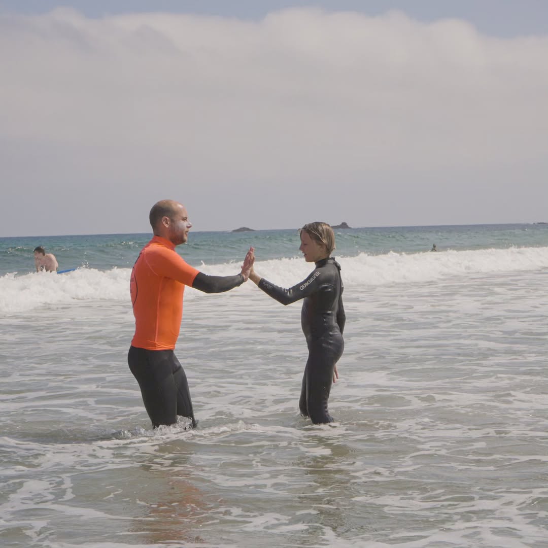 Técnicas para remar y ponerse de pie, calentamientos y estiramientos específicos. Divertirte surfeando tus primeras olas, de una forma dinámica y entretenida.